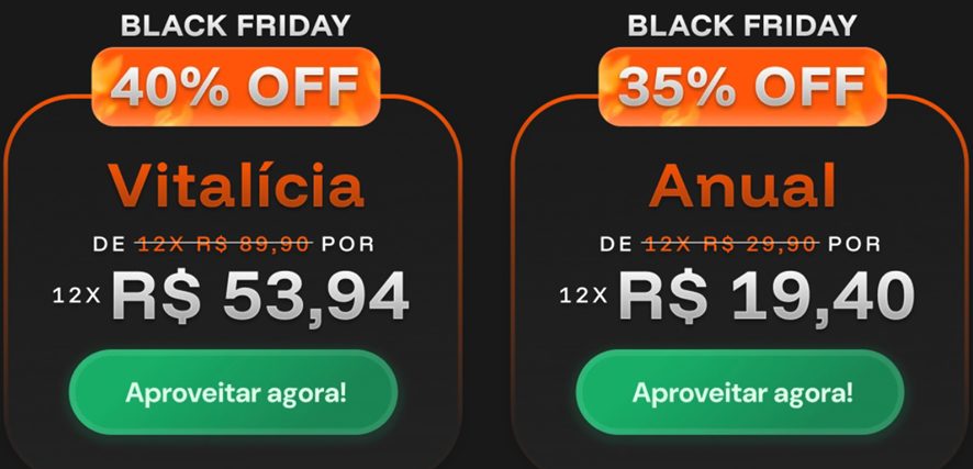 • Desconto irrepetível: 40% off torna a assinatura vitalícia ainda mais acessível.