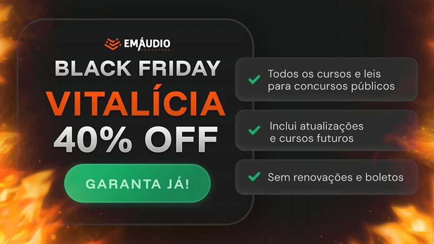 Se você realmente está comprometido com a aprovação e quer fazer um investimento de longo prazo na sua carreira, não pode deixar essa oportunidade passar. A Black Friday do EmÁudio Concursos no 2º lote com 40% de desconto na assinatura vitalícia é uma das melhores ofertas já vistas para preparação para concurso.